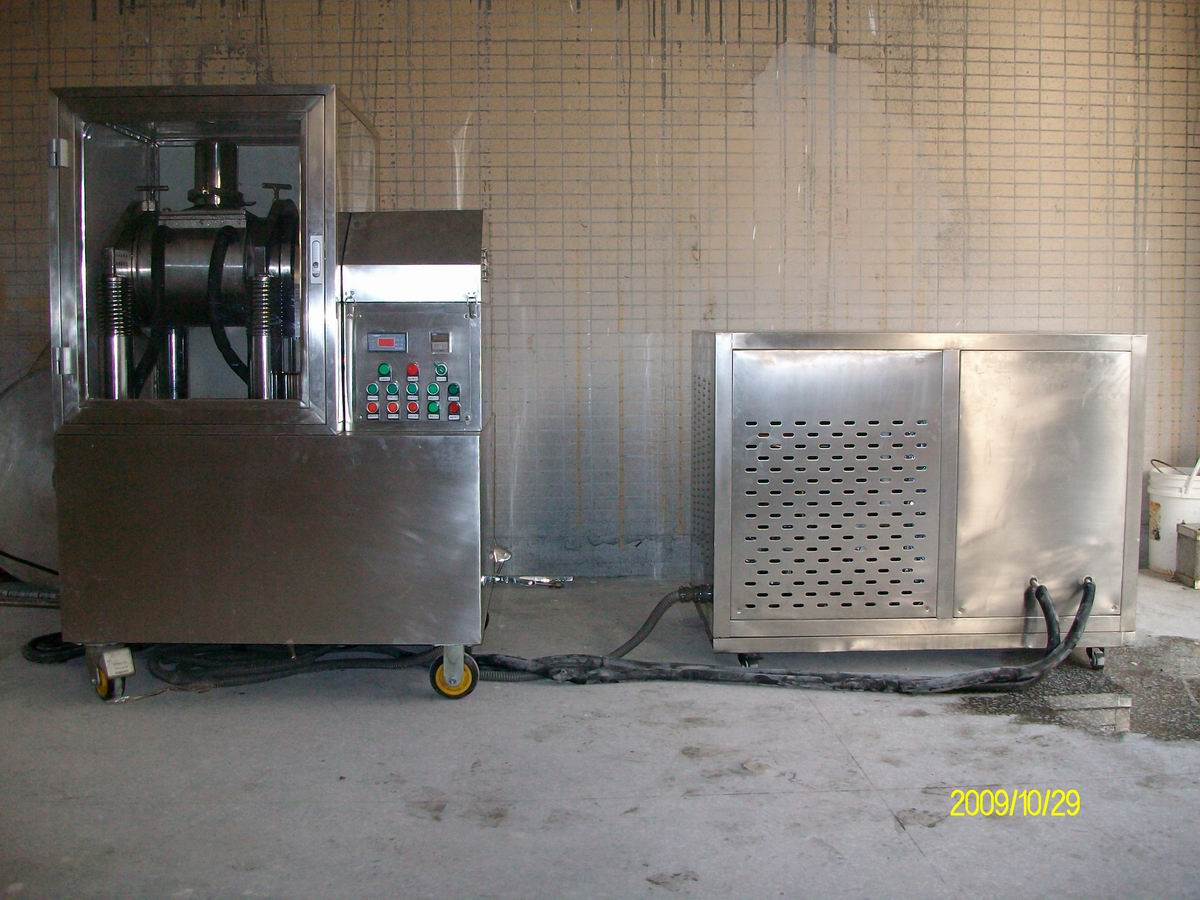 XDW-6B低溫超微粉碎機(jī)全不銹鋼外觀,可放于GLP實(shí)驗(yàn)室或30萬級(jí)GMP車間 制冷機(jī)循環(huán)冷卻,溫度可控,低溫